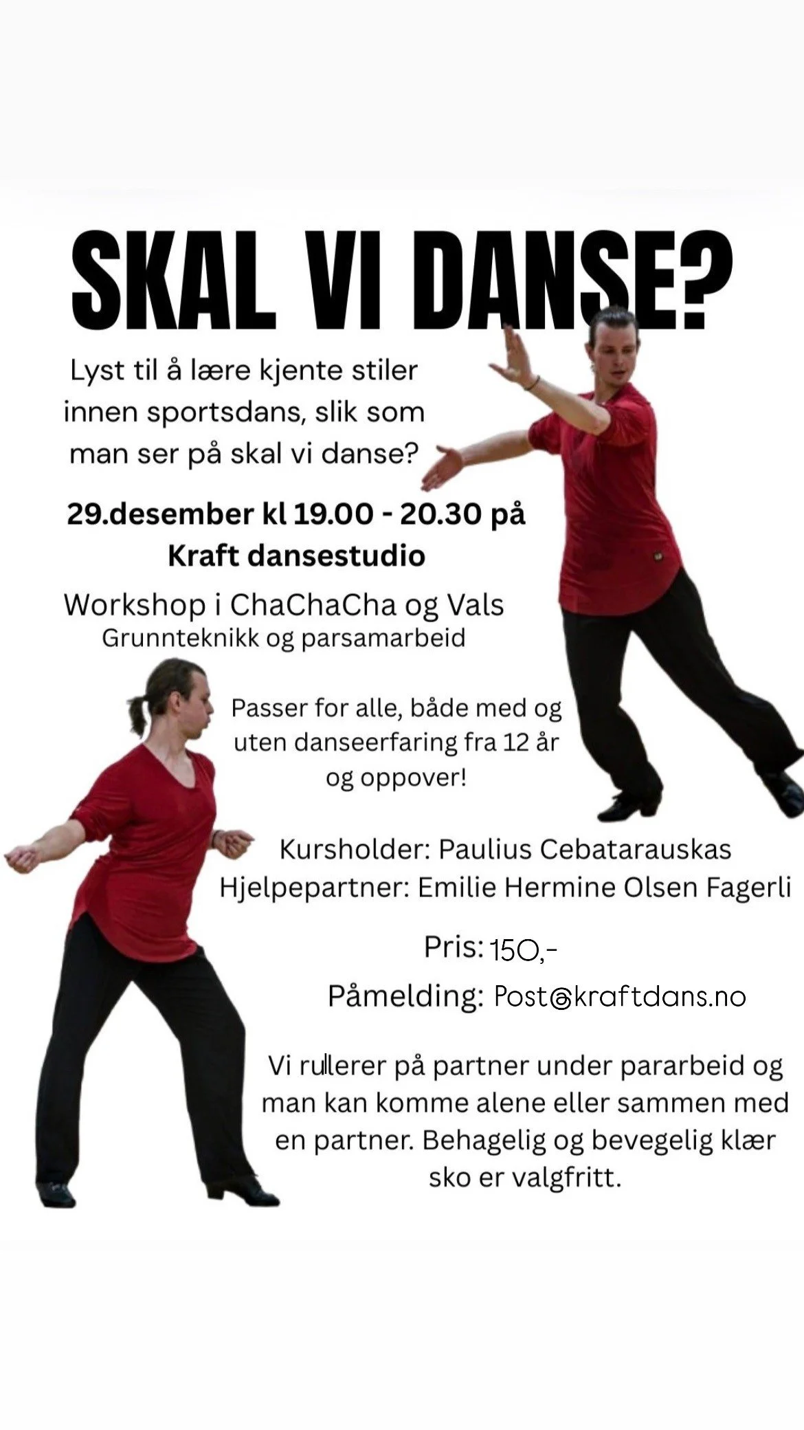Sportsdans består av 10 dansestiler som deles inn i standard og latin. I denne workshopen skal vi ta for oss ChaChaCha (latin) og vals (standard). ChaChaCha har mye energi og lekenhet. Det er en dans full av rytme, attitude og smittende glede. Vals går i tretakt og er både elegant og flytende. Workshopen passer for både de med og uten danseerfaring. Fokus ligger på det sosiale med dans og du trenger ikke å ha danset med partner tidligere. I pardans er det to ulike roller i dansen og man velger selv om man vil fokusere på “follow” eller “lead” rollen. Paulius er Norgesmester i latindans i konkurranseklassen og sitter på mye kunnskap fra både konkurranse, og trening i Falken danseklubb, NTNUI dans og ett semester i Italia.